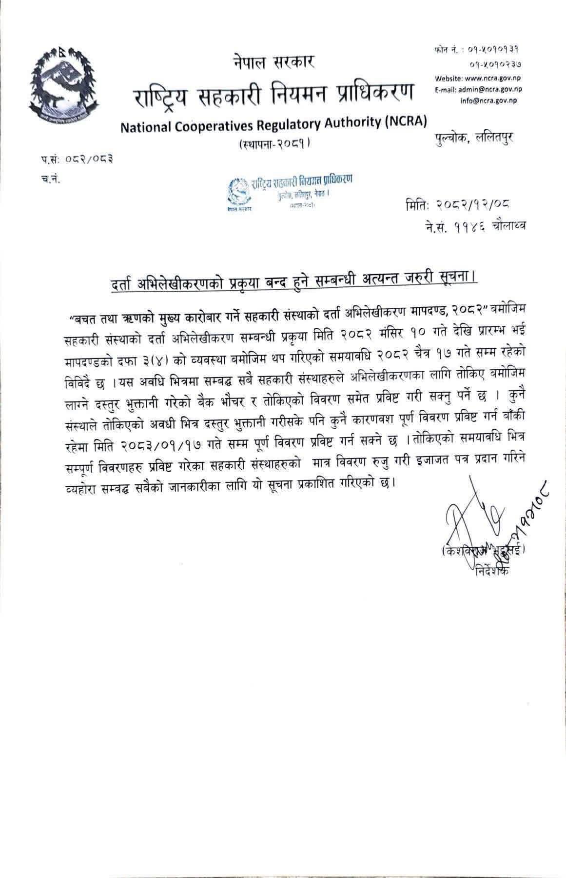 दर्ता अभिलेखीकरणको प्रकृया बन्द हुने सम्बन्धी अत्यन्त जरुरी सूचना ।