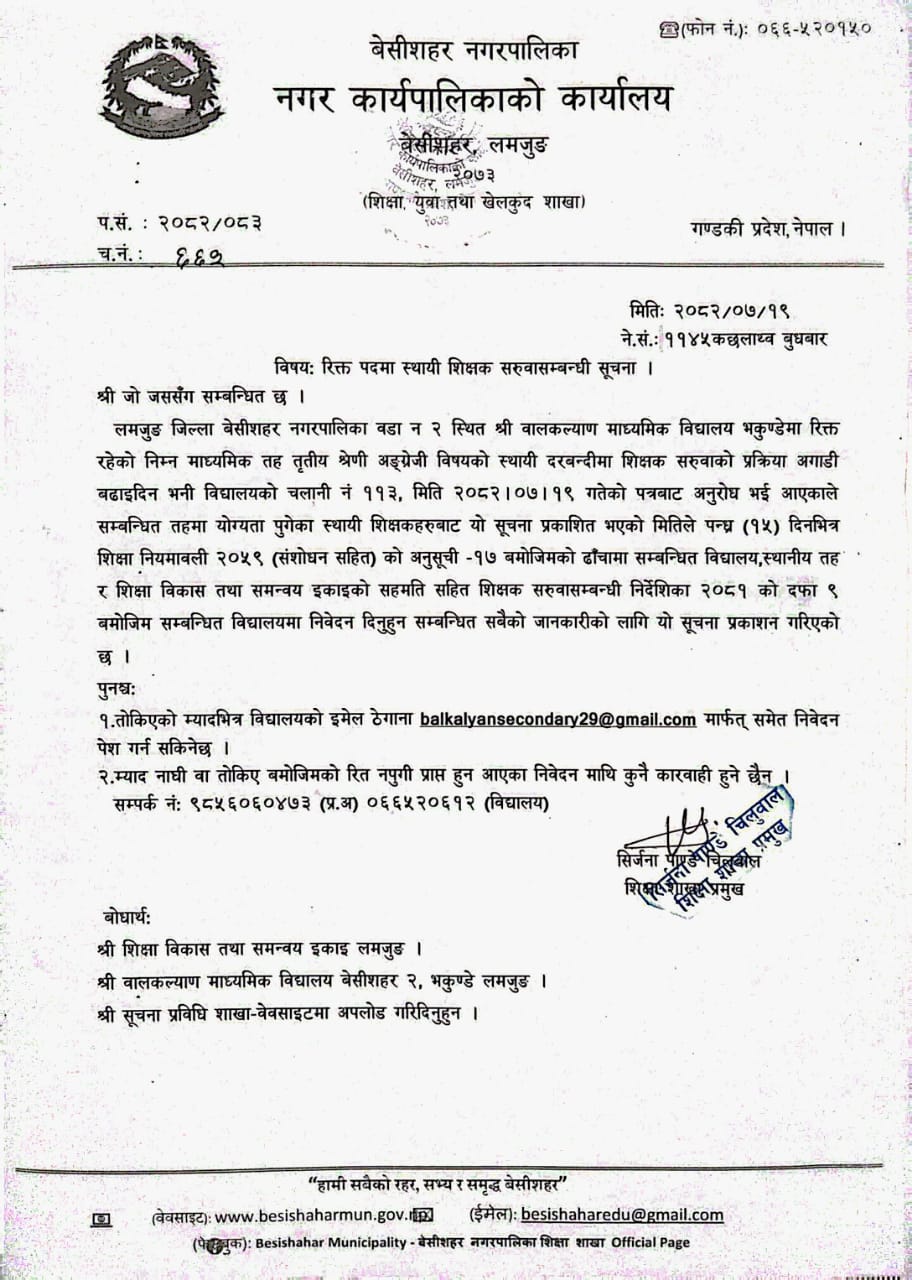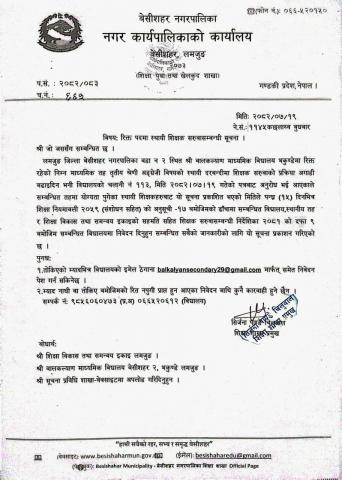 रिक्त पदमा स्थायी शिक्षक सरुवासम्बन्धी सूचना ।