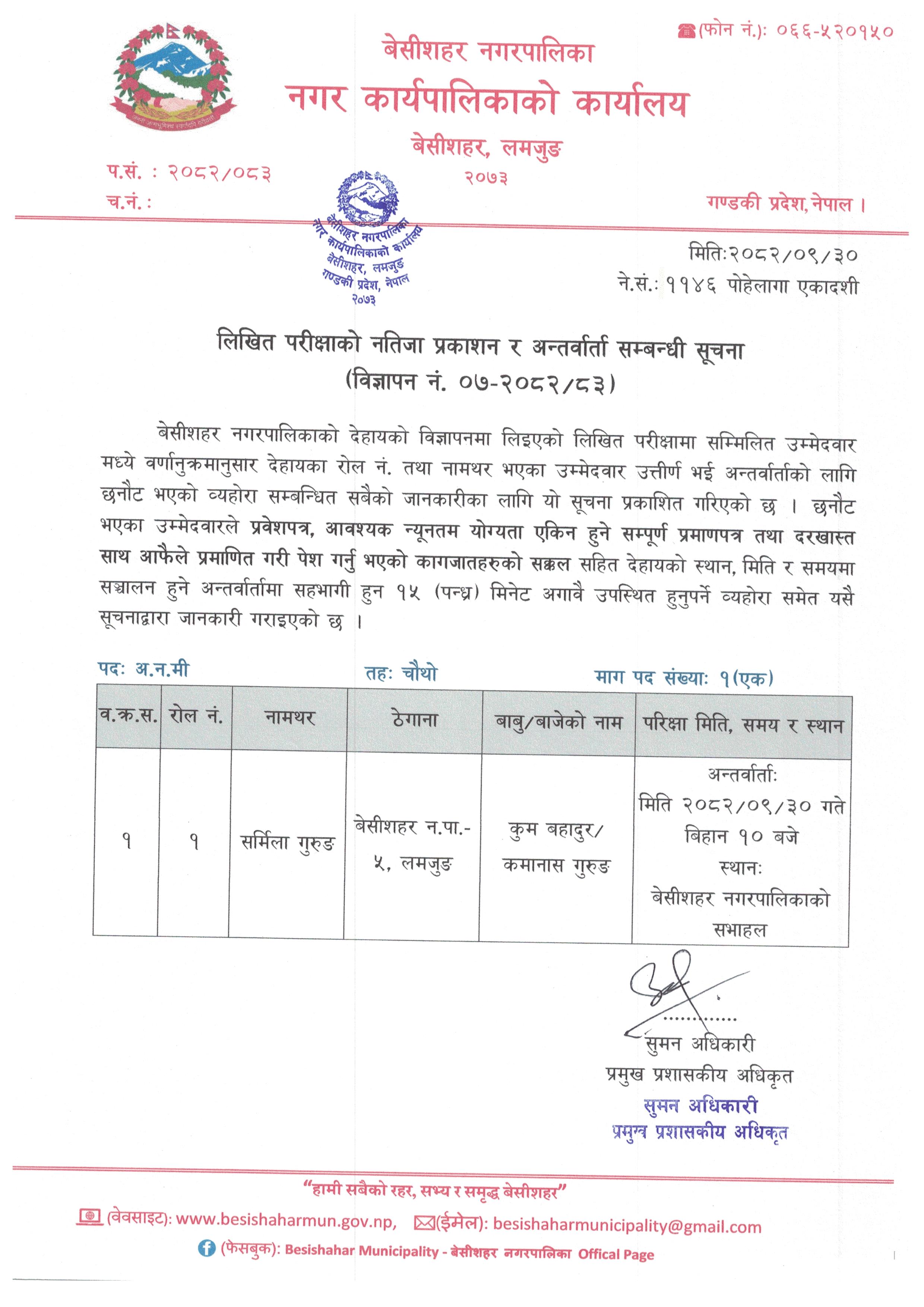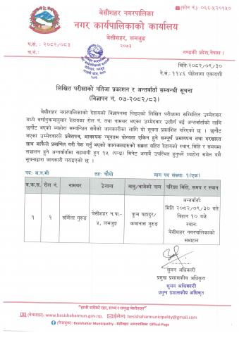 लिखित परीक्षाको नतिजा प्रकाशन र अन्तर्वार्ता सम्बन्धी सूचना ।