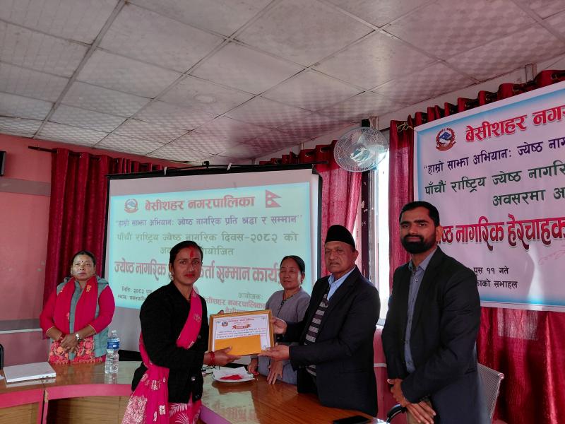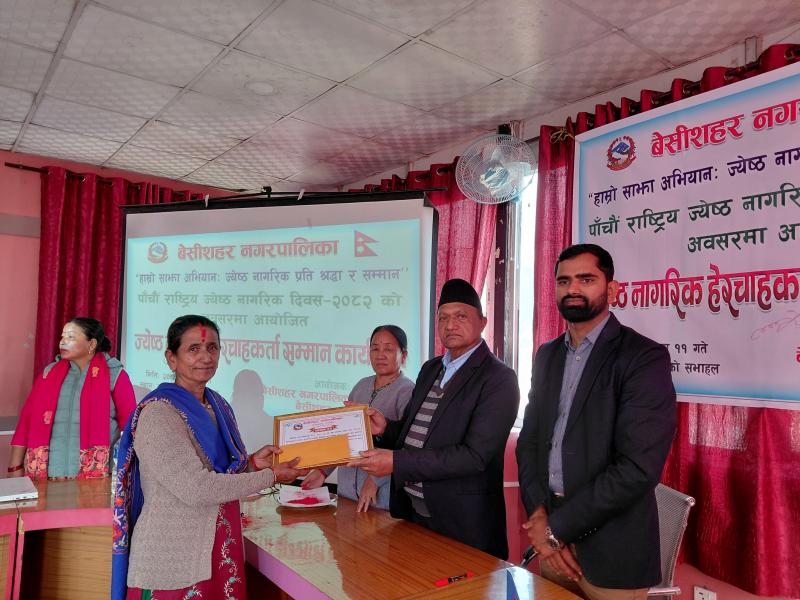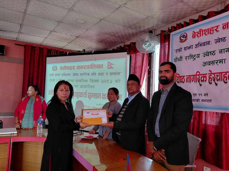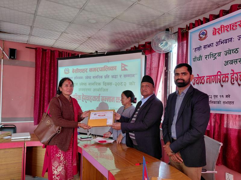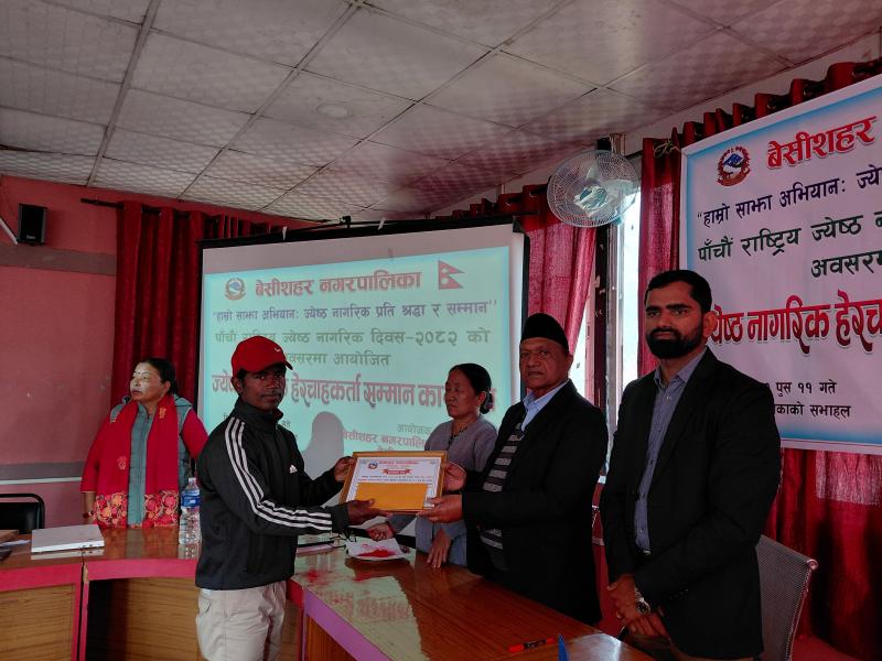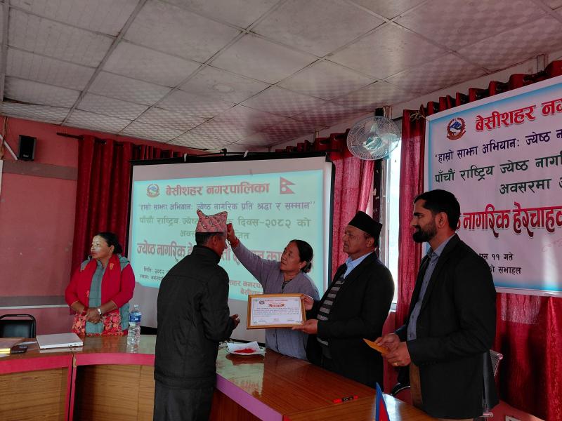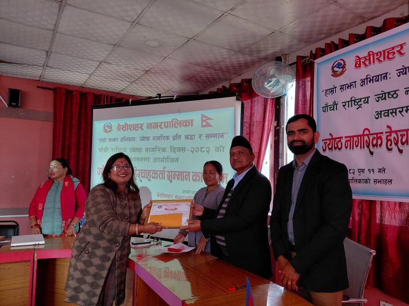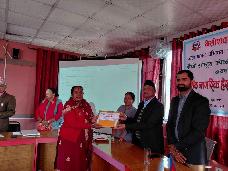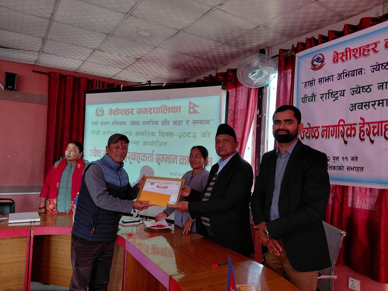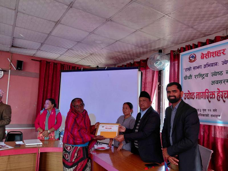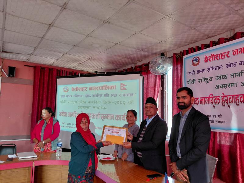 पाँचौ राष्ट्रिय ज्येष्ठ नागरिक दिवस २०८२ को अवसरमा आयोजित ज्येष्ठ नागरिक‌ हेरचाहकर्ता सम्मान कार्यक्रम