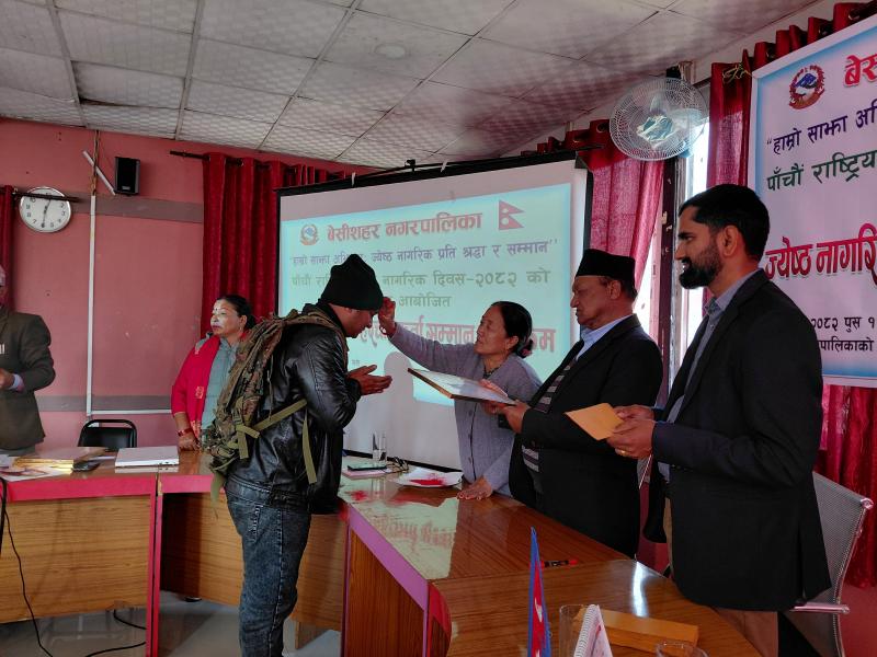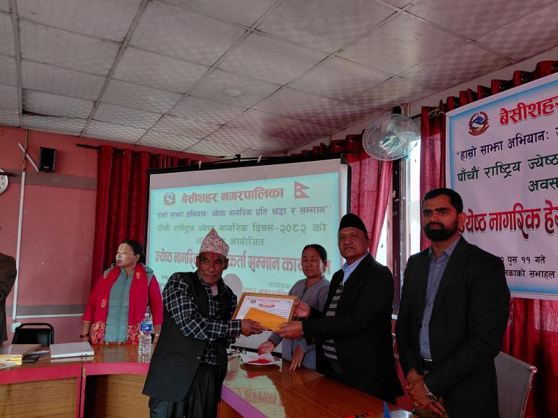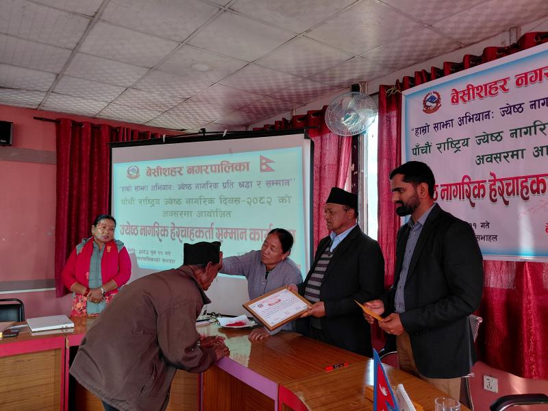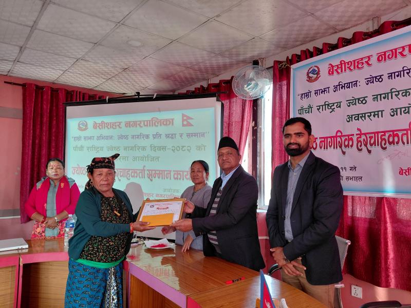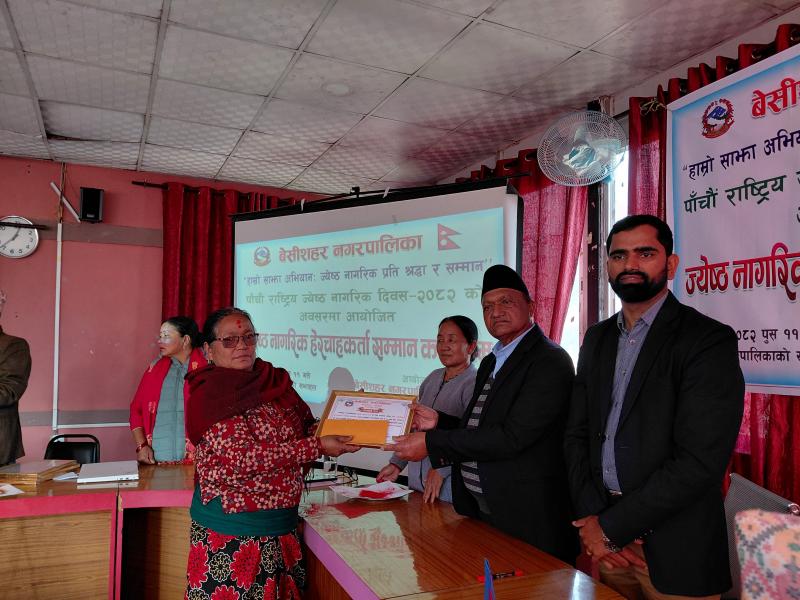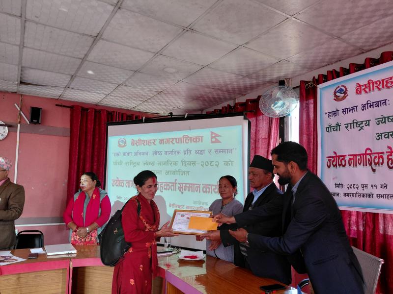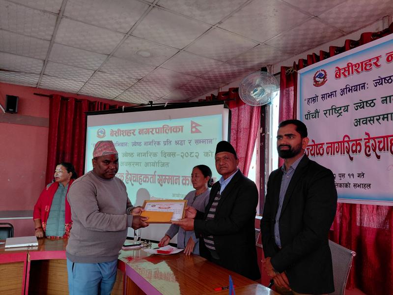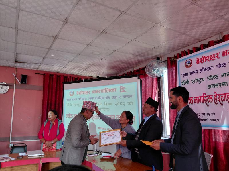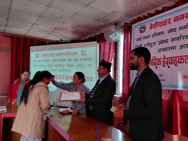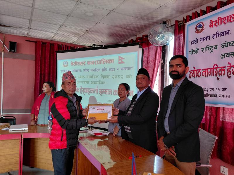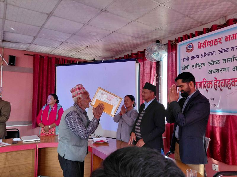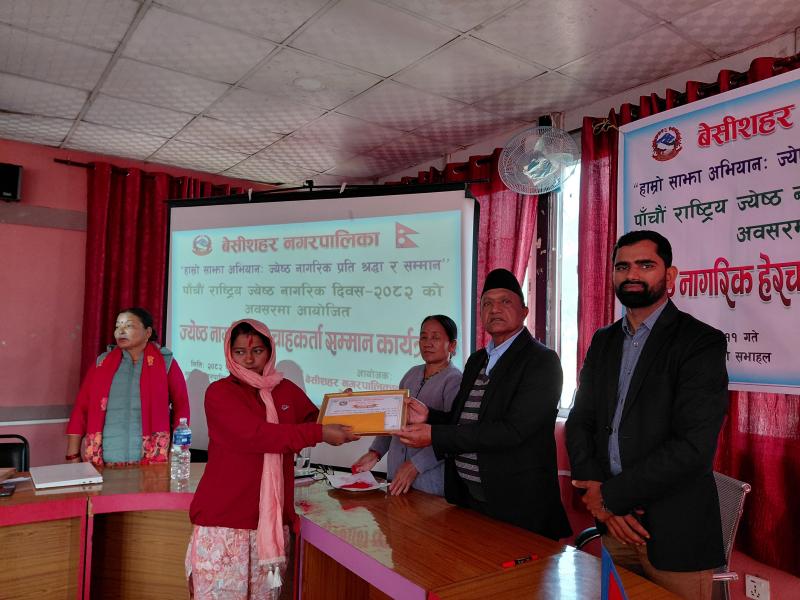 पाँचौ राष्ट्रिय ज्येष्ठ नागरिक दिवस २०८२ को अवसरमा आयोजित ज्येष्ठ नागरिक‌ हेरचाहकर्ता सम्मान कार्यक्रम