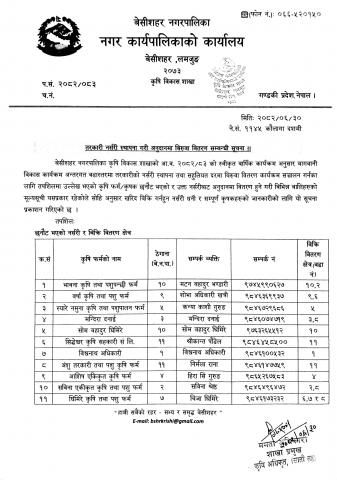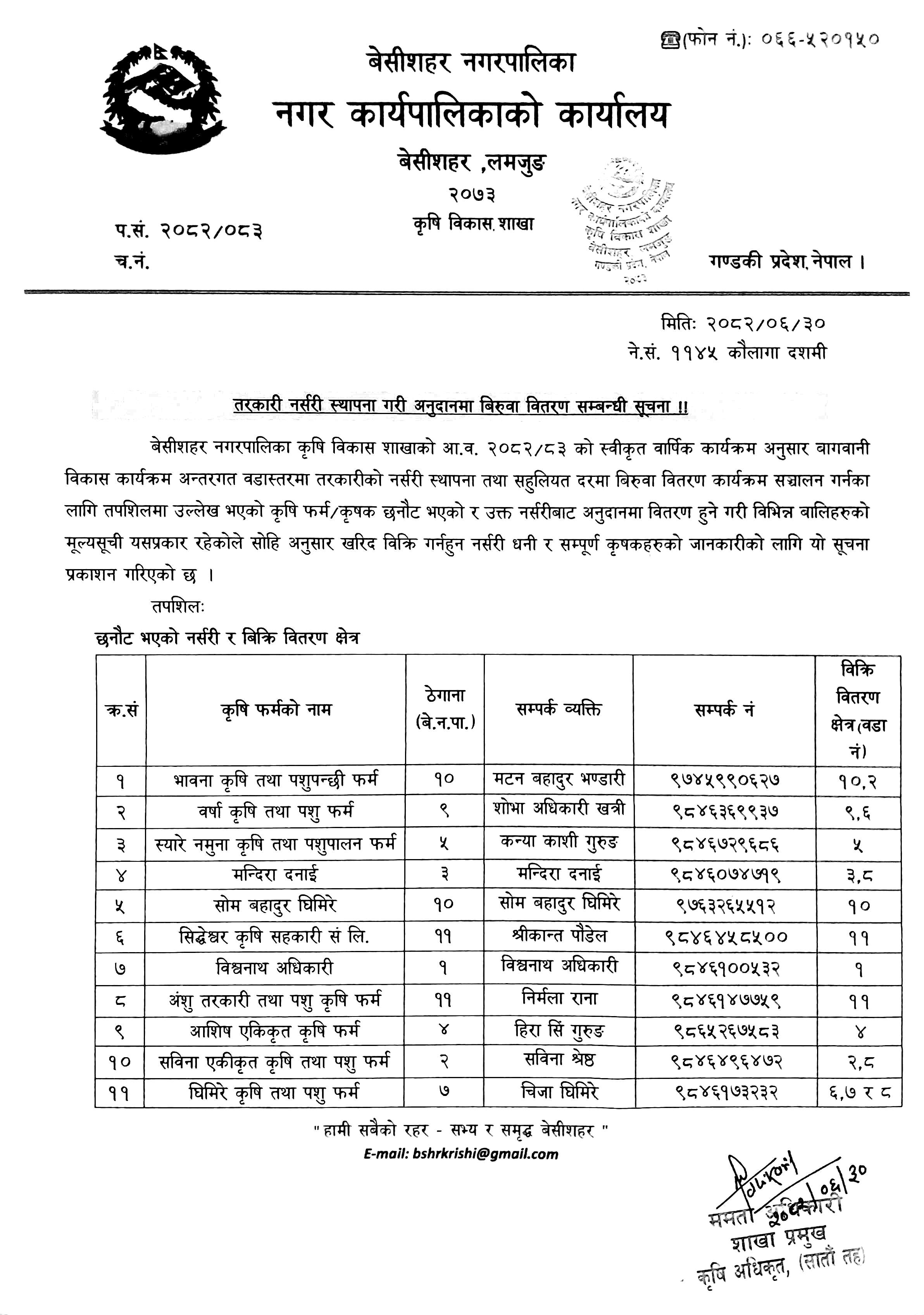 तरकारी नर्सरी स्थापना गरी अनुदानमा बिरवा वितरण सम्बन्धी सूचना ।