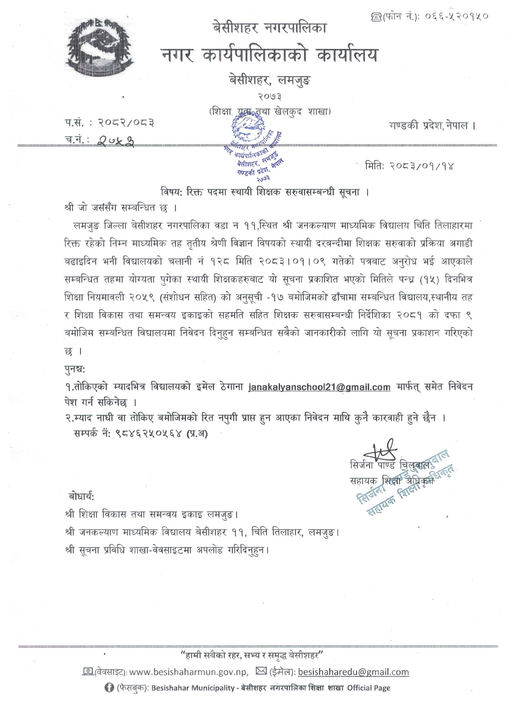 रिक्त पदमा स्थायी शिक्षक सरुवासम्बन्धी सूचना ।
