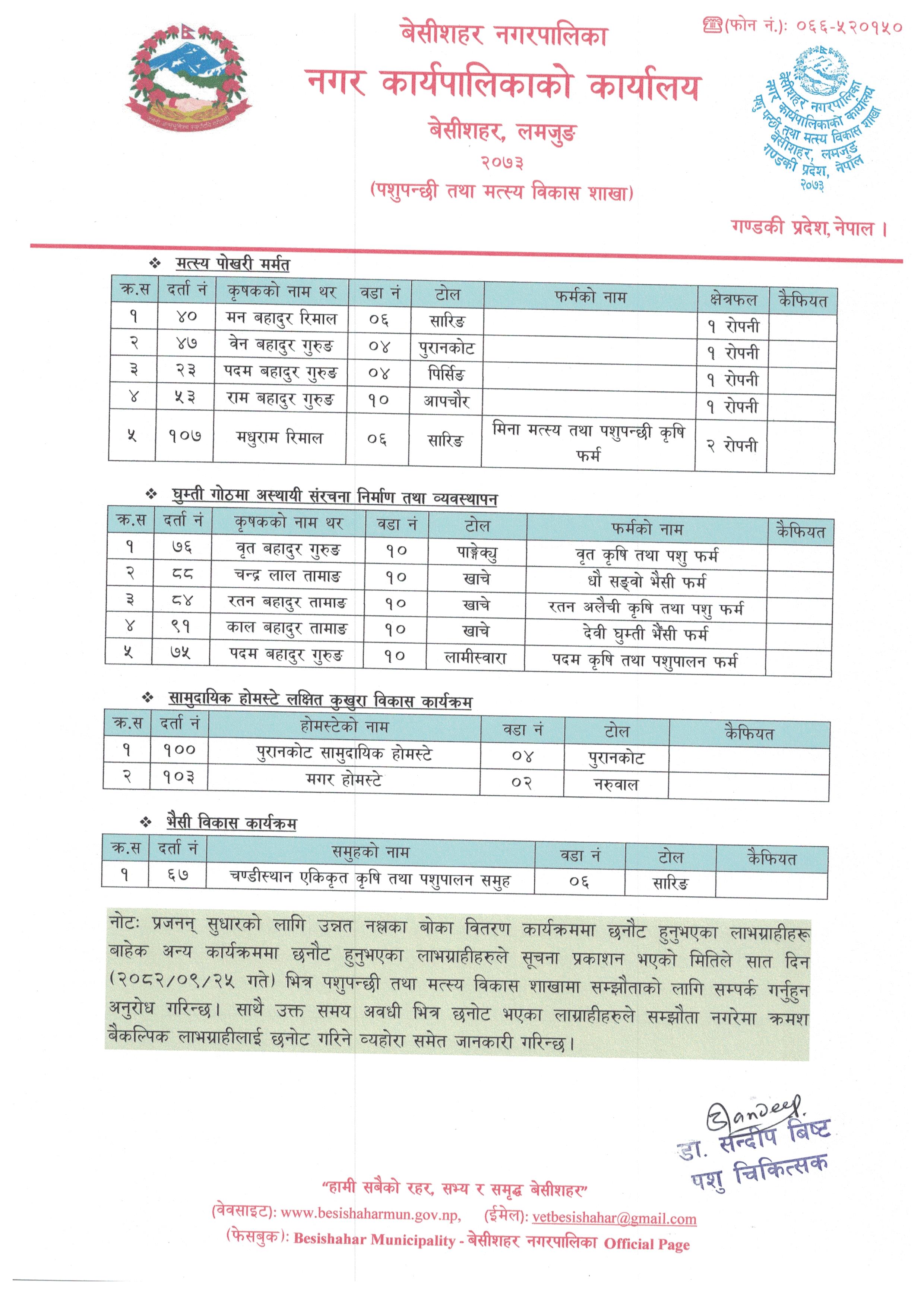 लाभग्राही छनौट सम्बन्धी सूचना ।