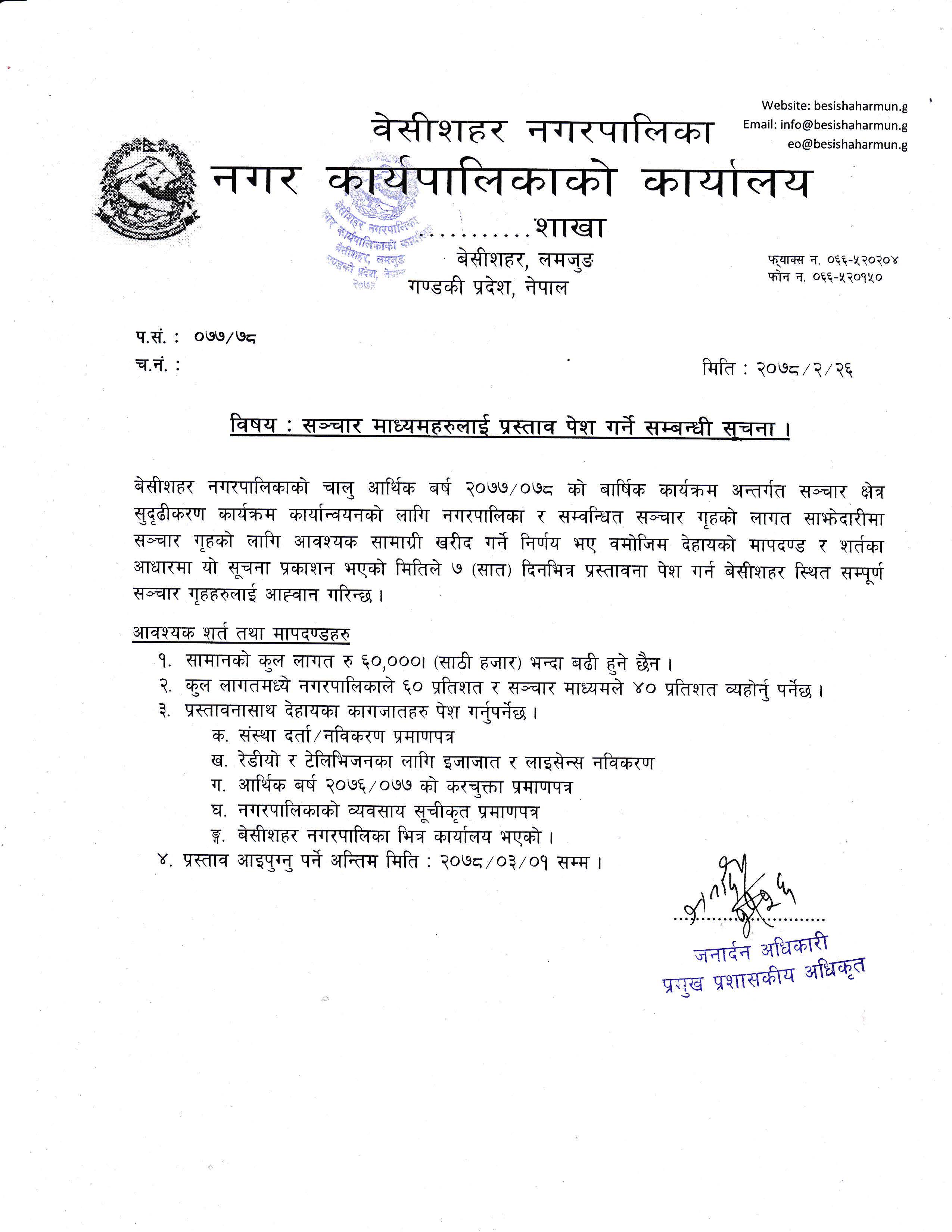 सञ्चार माध्यमहरुलाई प्रस्ताव पेश गर्ने सम्बन्धी सूचना ।
