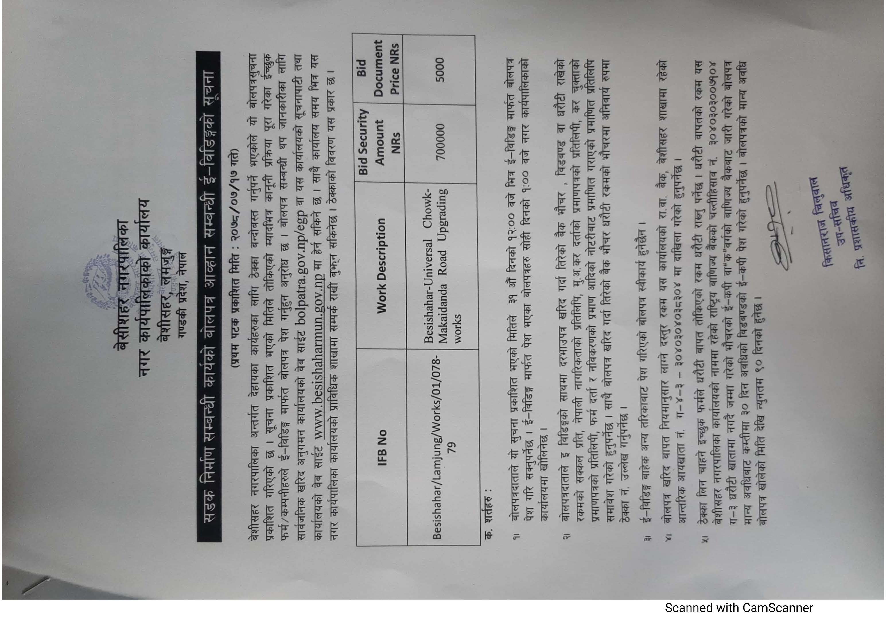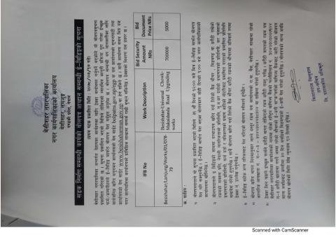 सडक निर्माण सम्बन्धी कार्यको बोलपत्र आव्हान सम्बन्धी ई—विडिङ्गको सूचना