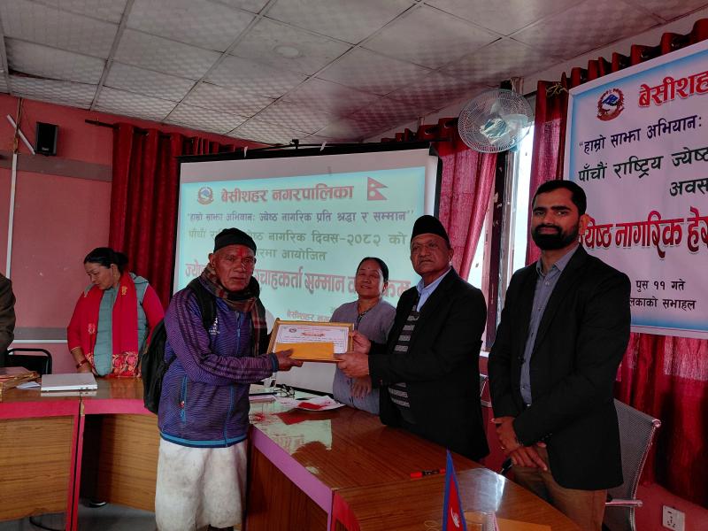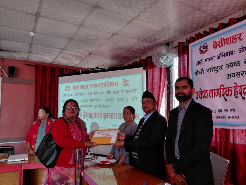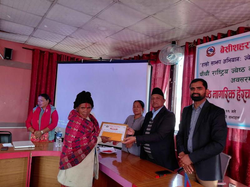 पाँचौ राष्ट्रिय ज्येष्ठ नागरिक दिवस २०८२ को अवसरमा आयोजित ज्येष्ठ नागरिक‌ हेरचाहकर्ता सम्मान कार्यक्रम