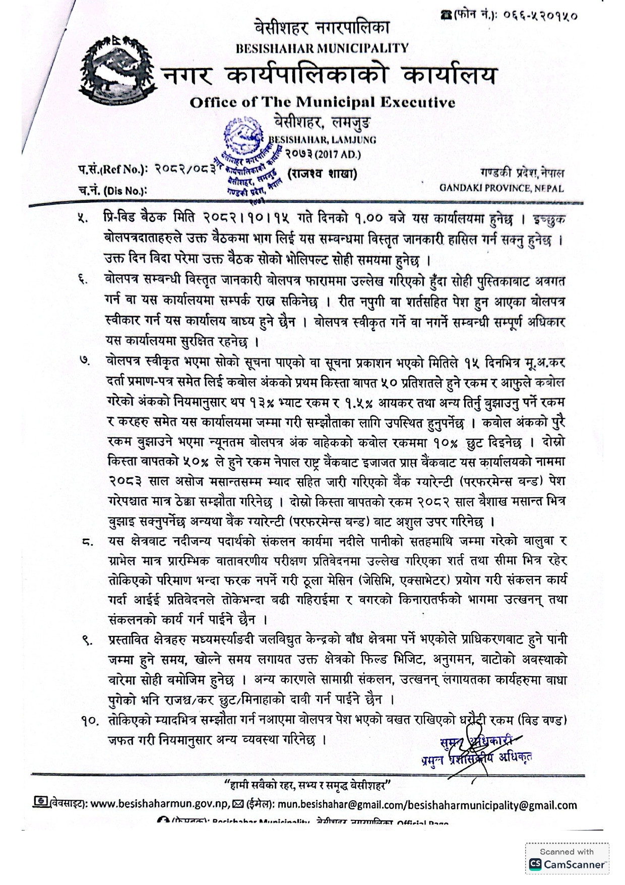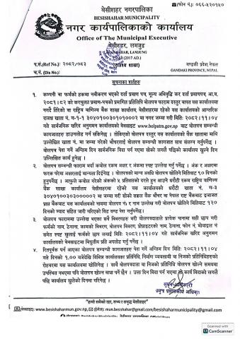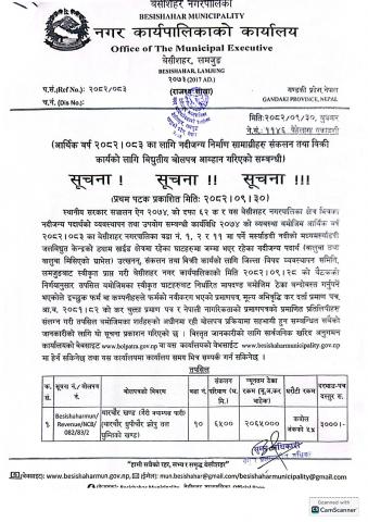 आर्थिक वर्ष २०८२।०८३ का लागि नदीजन्य निर्माण सामग्रीहरु संकलन तथा बिक्री कार्यको लागि विद्युतीय बोलपत्र आह्वान गरिएको सम्बन्धी सूचना ।
