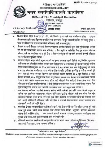 बेसीशहर नगरकार्यपालिका बैठककाे मिति २०८२/०७/१५ गतेका निर्णयहरु