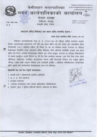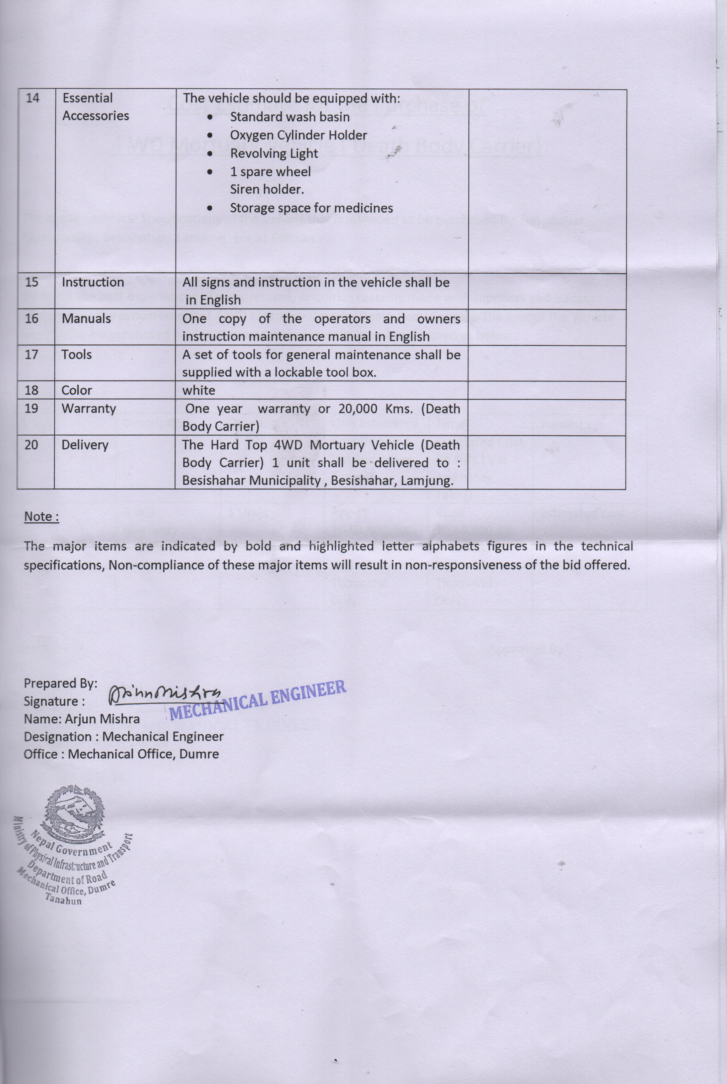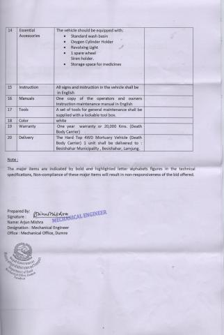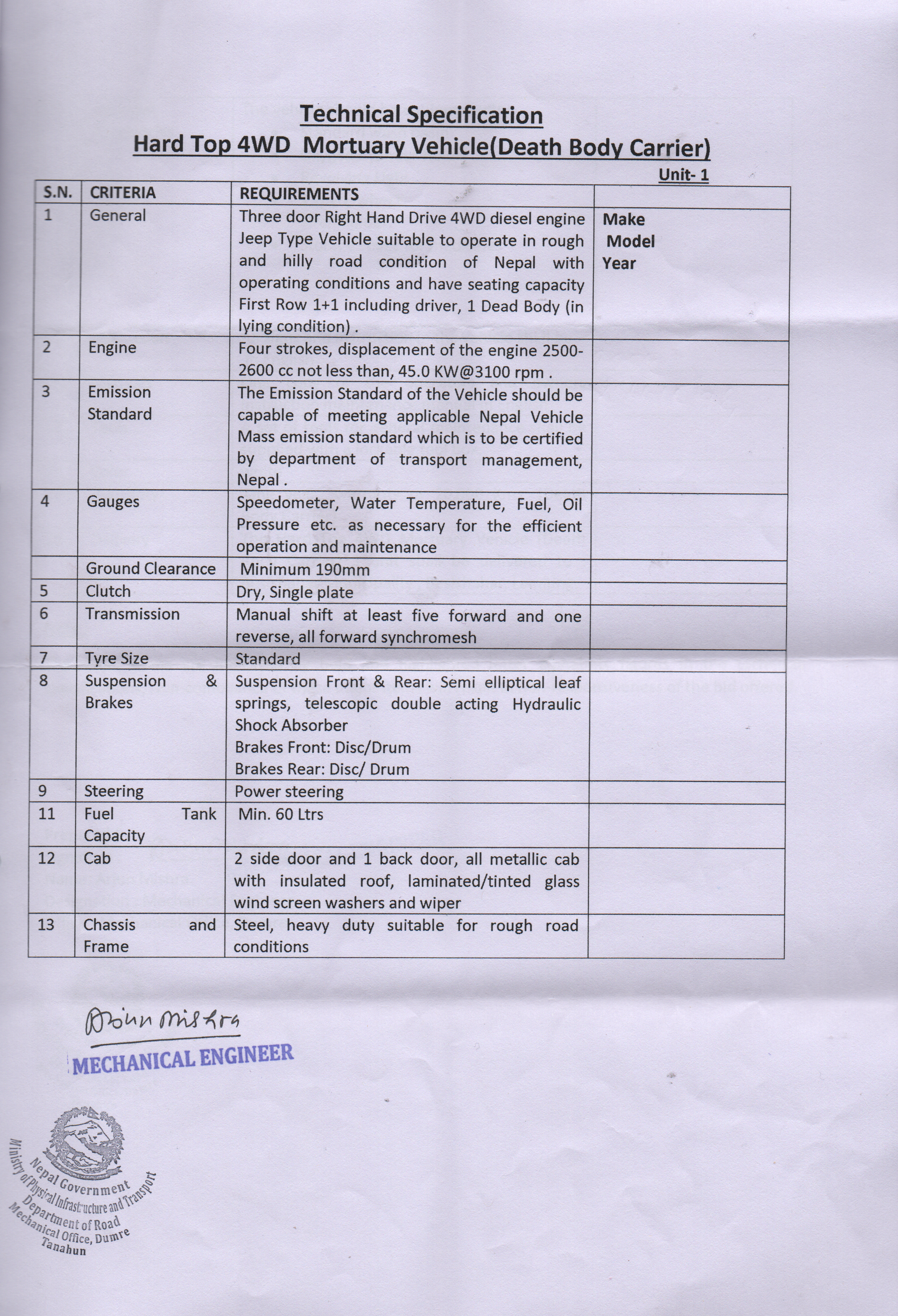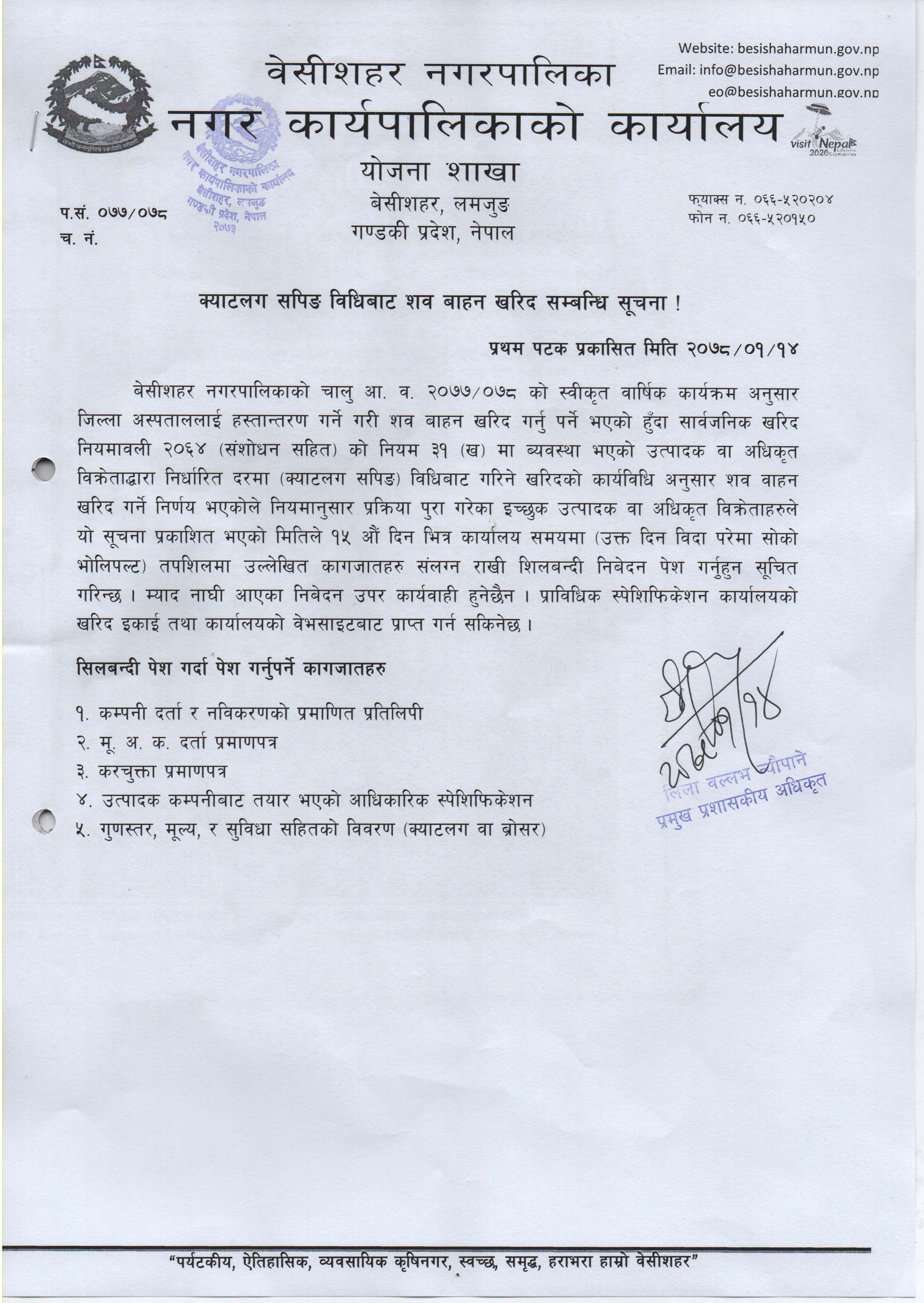 क्याटलग सपिङ्ग विधिबाट शव बाहन खरिद सम्बन्धी प्रथम पटक प्रकाशित सूचना ।
