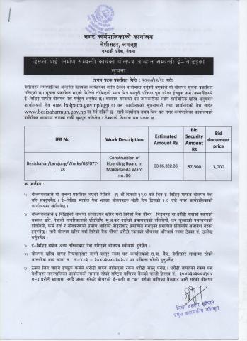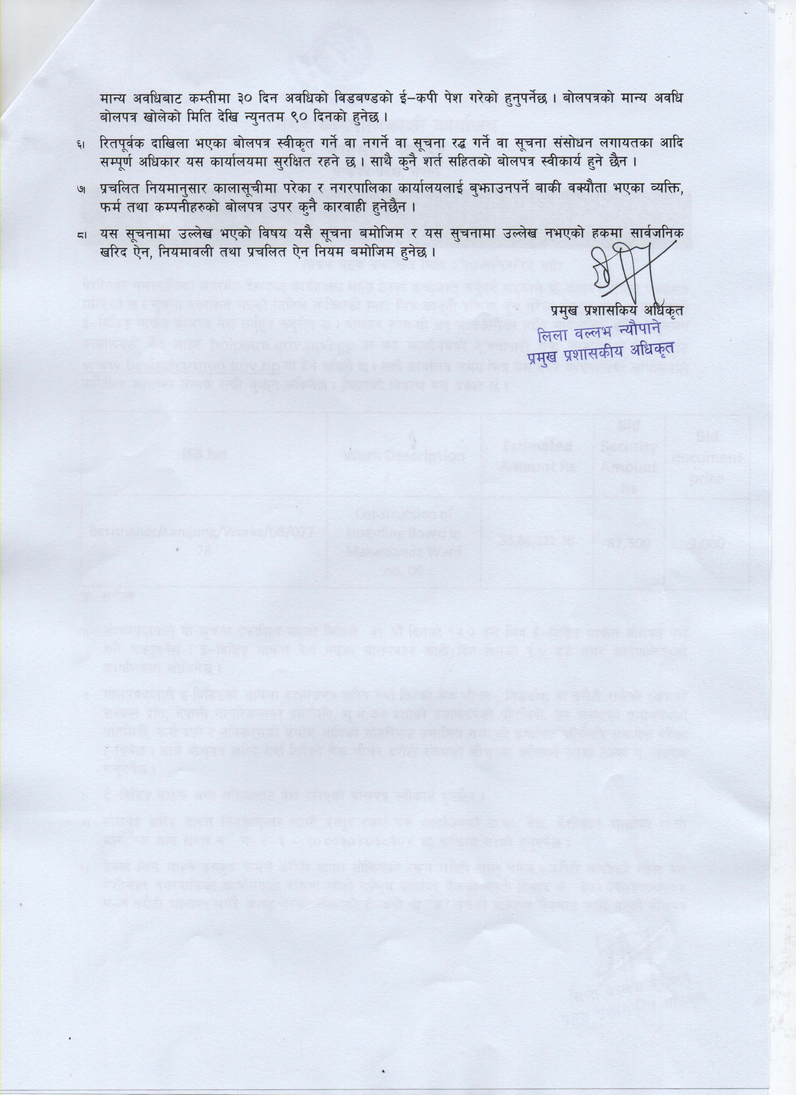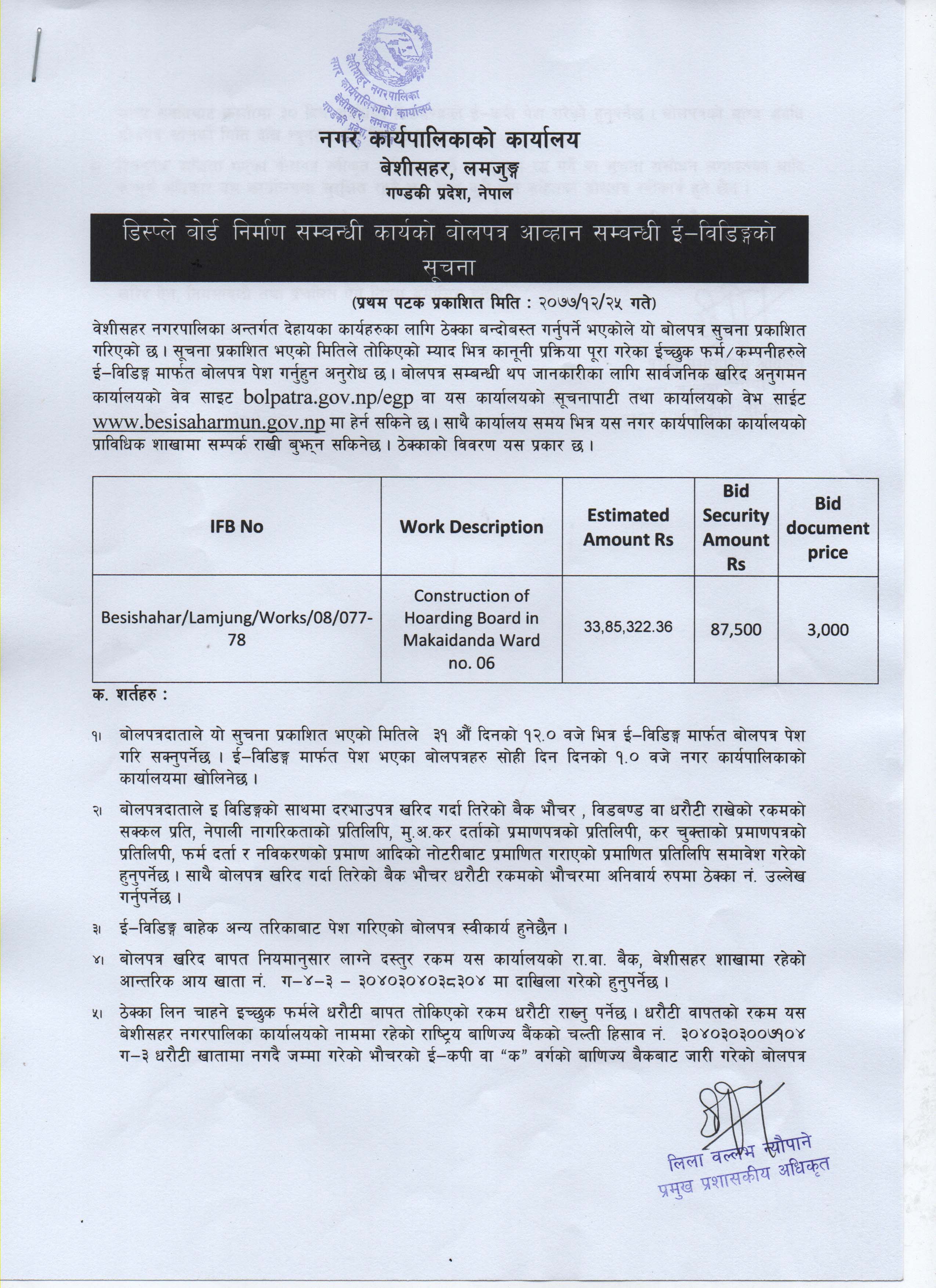 डिस्प्ले बोर्ड निर्माण सम्बन्धी कार्यको बोलपत्र आव्हान सम्बन्धी ई—विडिङ्गको सूचना