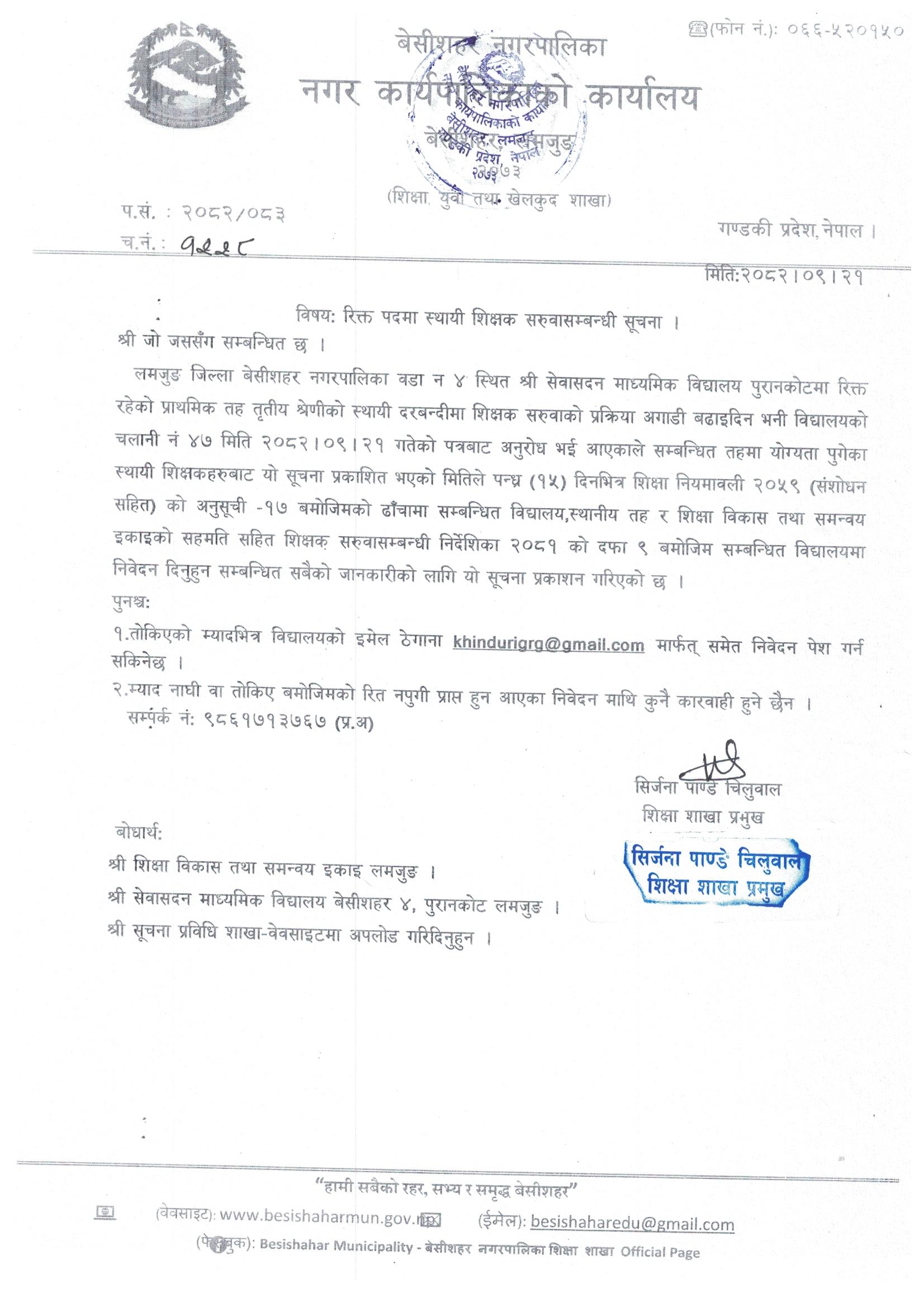 रिक्त पदमा स्थायी शिक्षक सरुवासम्बन्धी सूचना ।
