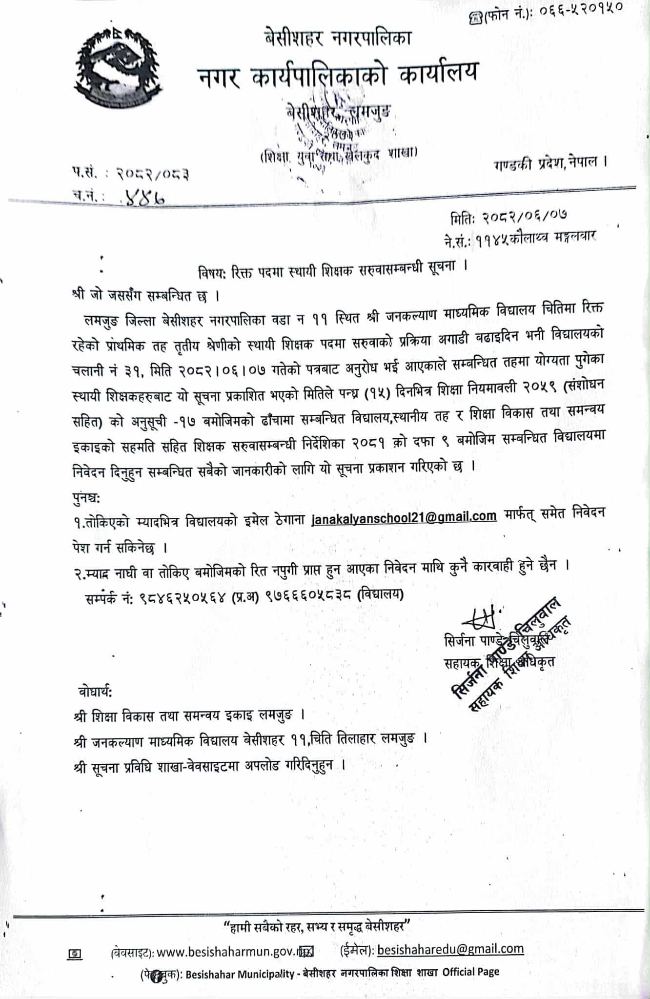 रिक्त पदमा स्थायी शिक्षक सरुवा सम्बन्धी सूचना ।