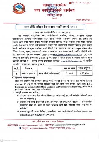 सूचना प्रविधि अधिकृत सेवा करारमा पदपुर्ती सम्बन्धी सूचना ।